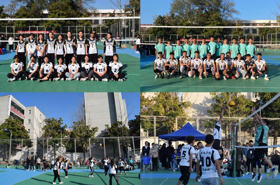 金风玉露,阳光明媚。安徽科技学院大学生排球联赛决赛于11月24日下午在凤阳校区玉园排球场开赛。建筑学院男女排球队分别对战机械工程学院男子排球队和资源与环境学院女子排球代表队,院党委副书记、纪委书记谢宜勤、专职辅导员李新、阮怀思、武辉来到现场为运动员们加油助威。