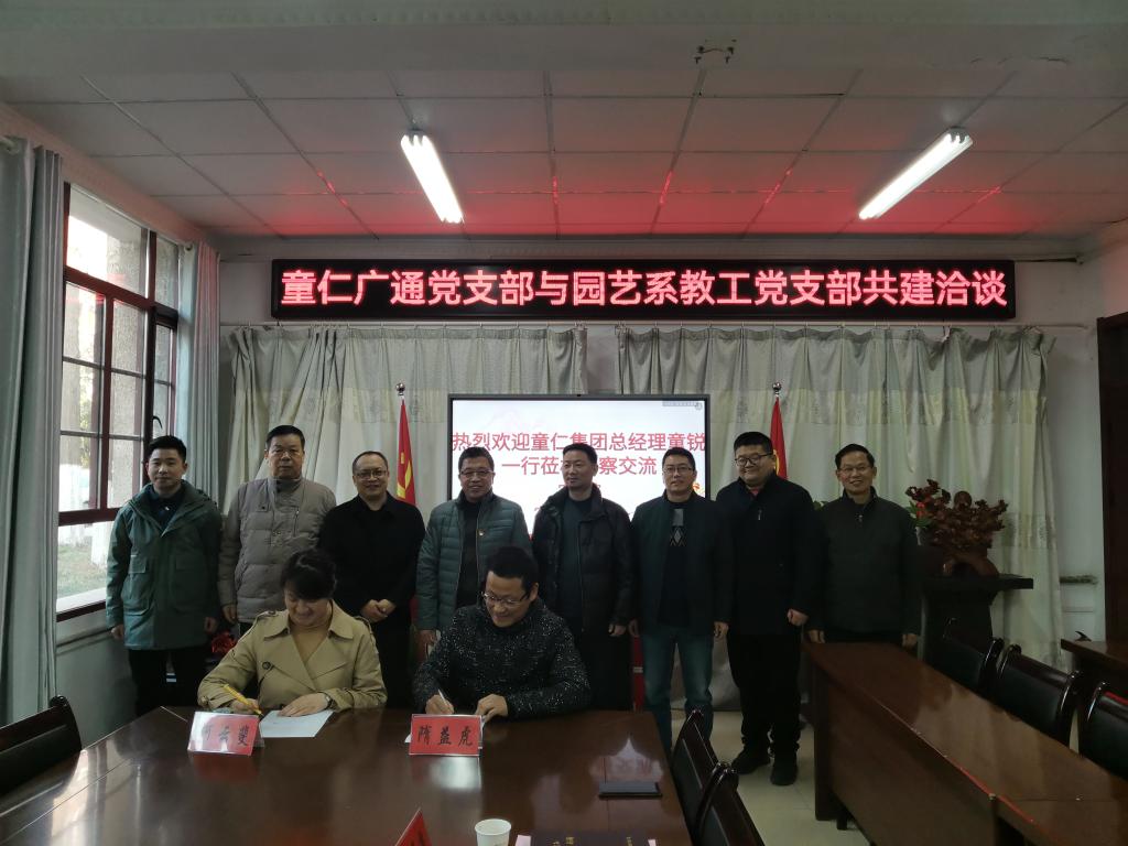 2月27日,安徽童仁智能科技有限公司童仁广通党支部与农学院园艺系教工党支部支部共建活动在农学院会议室举行。童仁集团总经理童锐、童仁智能总经理吴飞、蚌埠市淮上区企业党建指导员杜长学、党支部书记何云斐、工会主席李明哲,食品工程学院党委书记付光玺,农学院党委书记何世潮、农学院副院长李文阳,园艺系教工党支部书记隋益虎,园艺系教工党支部党员代表何华奇、张开京等参加会议。会议由农学院党委副书记、纪委书记张轶辉主持。