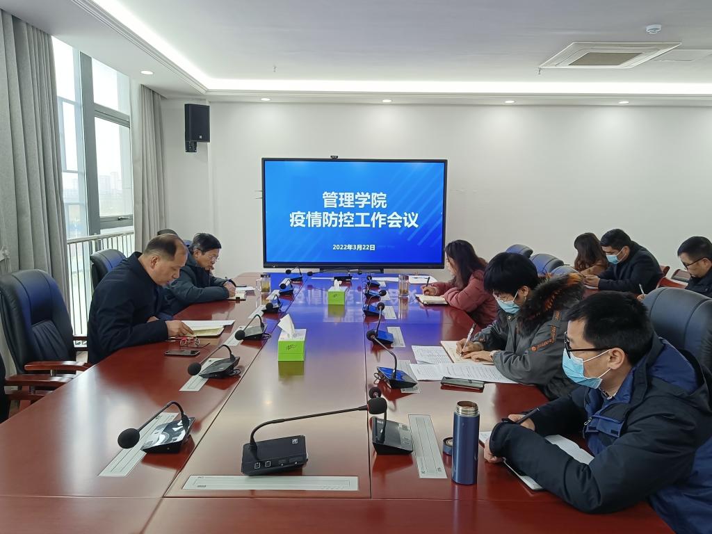 3月22日下午,管理学院党委书记丁景良再度召开专题会议,传达22日上午学校新冠肺炎疫情防控工作会议精神,对精准做好当前学院层面疫情防控工作再作动员,再作部署。党委副书记、院长陈传万,党委副书记陶漫,党委委员、副院长长张国宝,党委委员、副院长郑谦出席会议,各教研室(系)负责同志,学院教学秘书,疫情联络员,全体专兼职辅导员参加会议。
