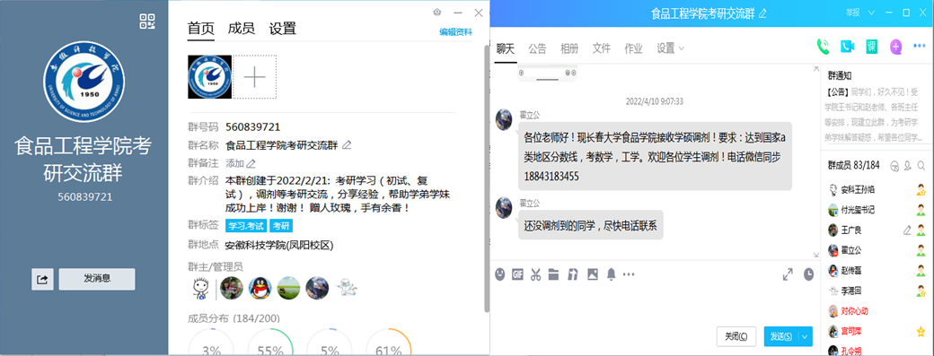 受2022年考研报考人数激增影响,食品专业相关院校复试线大幅上涨,食品工程学院考研学生第一志愿院校复试线平均上涨近30分。学院关注关心学生考研复试需求,在院党委的坚强领导下,坚持以“党建+”促考研,推出一系列“云考研”帮扶举措,助力考研学生备考复试。一是学院党政协同、全员出动、下沉一线,在考研成绩公布后,学院第一时间召开毕业生考研复试专题会议,分析情况,研判形势,统一认识,增强紧迫感,强化责任意识,积极制定相关措施,全力做好考研复试服务工作;二是召开复试调剂动员会,学院党政主要负责人和报考学生面对面交流,讲清形势,讲透方法,激励学生树立必胜信心;三是学院建立考研辅导QQ群,广泛联系同行和校友,收集并发布调剂信息,通过线上辅导与线下相结合的方式,以真诚指导、热心服务、积极推荐助力考研学生达成录取心愿;四是学院注重发挥教师党员、高级职称教师和博士教师的作用,动员他们积极联系调剂学校和导师,推介考研学生,并在内容复习、调剂申请、自荐信撰写、面试技巧、心理调适等方面对考研学子予以悉心指导,帮助提高上线学生的复试成绩;五是针对复试环境的较高要求,学生多面临无场所、无设备等实际问题,学院统筹协调相关场所和设备,将会议室、党员活动室、实验室、辅导员办公室等作为考研学子复试场地,提前安排专人打扫整理、调度使用,全力为复试学生解决复试环境问题,助力考研学生取得理想成绩。