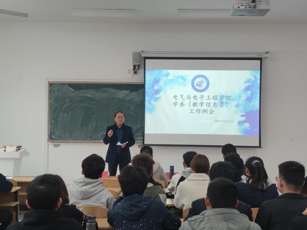 为提升学院的学习氛围,进一步促进学风建设,3月17日下午,电气与电子工程学院在致知楼C303教室召开新学期学委暨教学信息员工作例会。学院党委副书记尚磊,辅导员陈更强、洪乃羽老师,教务员任燕老师及18、19、20级各班学习委员参加了会议。