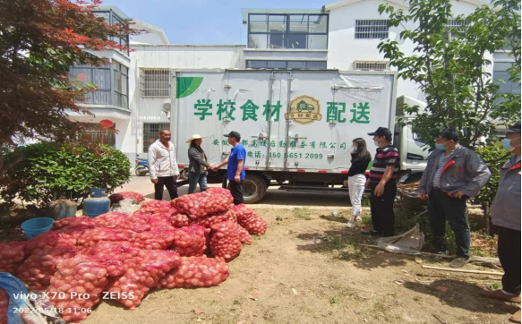 凤阳县栆巷镇黄咀村是我校乡材振兴定点帮扶村。早在年初,学校后勤保障部就按照学校要求,精心谋划年度帮扶工作,并多次对接驻村工作队,结合学校食堂实际,指导农户合理规划种植。5月16日,后勤保障部党支部书记胡明接到我校驻黄咀村第一书记、帮扶工作队队长崔峰教授的电话,反映当地刚脱贫农户种植的土豆大量积压,希望学校给予帮扶支持。接到通知后,后勤保障部党员干部会同饮食服务监管中心管理人员第一时间组织动员学校食堂各餐饮企业尽最大能力积极解决农户的困难,深入基层为群众办实事,及时协调车辆组织人员到田间地头采购积压的四千余斤土豆,拉到学校食堂,解决农户的燃眉之急。