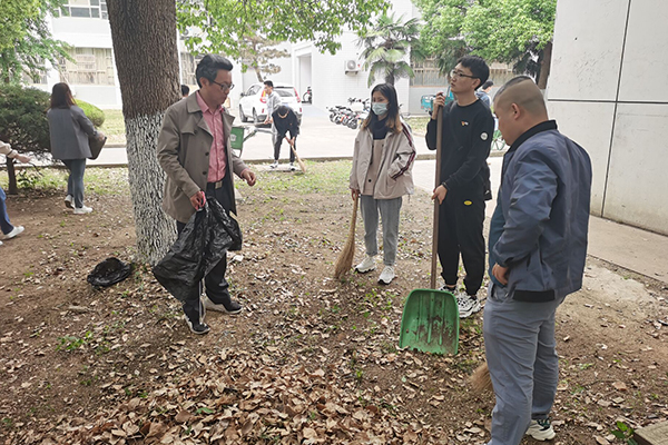 当天上午10点,研究生党支部的同志们从物业服务中心借来扫帚、铲斗、垃圾清运车等各种劳动工具,统一前往研究生党支部“先锋林”责任区,清扫落叶、杂草和碎石等杂物。经过一个多小时的清理养护,林区内草坪、花圃、绿化带面貌焕然一新。大家在劳动过程中分工协作,精神饱满,其乐融融。