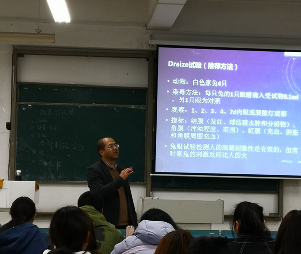 校级教坛新秀李磊副教授主要讲授了《毒理学》第四章第二节急性毒性作用及其评价,李磊利用雨课堂设计了回顾性问题,带领学生回顾了上次课的内容,进一步分析了传统急性毒性实验的缺点,引入急性毒性实验替代法等教学内容,期间多次利用雨课堂随机点名等功能与学生互动交流,课堂气氛活跃,学生课堂参与度高,很好的展示了智慧课堂在教学实践中的优势,得到了学生与听课教师的一致好评。
