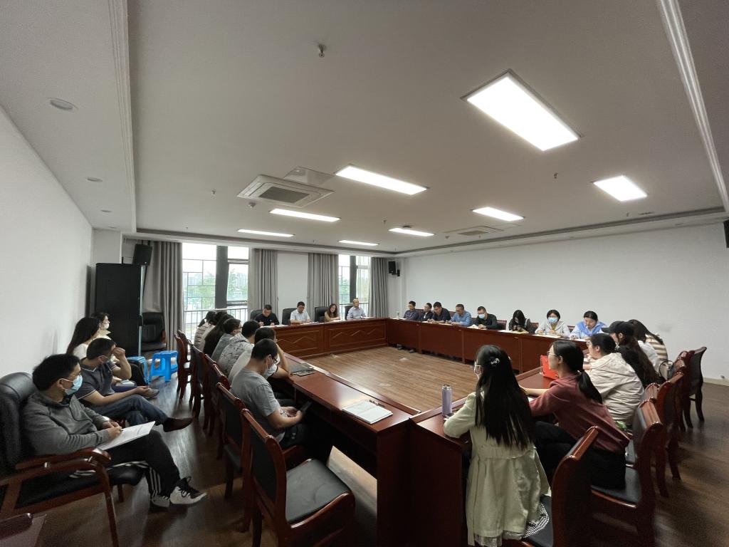 5月18日,财经学院在龙湖校区西辅楼225室组织召开期中全体教职工线上线下会议,学院党政班子成员、各教研室主任和全体教职工参会,会议由学院党委副书记、纪委书记耿广汉主持。