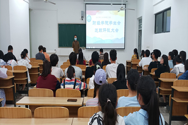 为进一步加强学生干部队伍建设,不断提高学生干部的责任意识、服务意识和大局意识,推动学生会工作科学化、规范化、精细化,财经学院学生会于5月17日下午在致知楼C208组织开展2021-2022学年第二学期述职评议工作。学院党委副书记、纪委书记耿广汉,学院纪委副书记、团委书记薛枫,专职辅导员朱中军,校学生会主席李治云,学生代表岑姗姗、张天乐,应邀担任本次述职评议的评委。