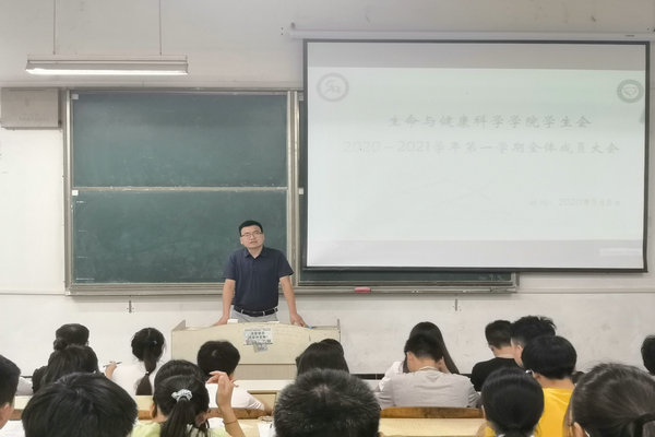 为了确保学期初工作有序开展,做好学生会干部选拔工作,9月8日中午,生命与健康科学学院学生会于求知楼A103教室召开2020—2021学年第一学期首次全体成员大会。学院分团委书记王传林、专职辅导员黎冯梅出席本次会议,学生会全体成员参加会议,会议由学生会主席曹银主持。