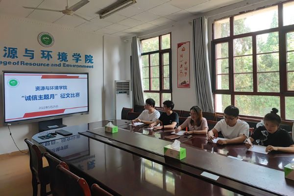 为进一步做好学生资助诚信教育,强化资助育人成效,资源与环境学院于5月开展资助诚信教育主题月系列活动之主题征文比赛。资源与环境学院团委副书记杨小晗、第六届学生会执行主席陈汉、高瑶瑶、第七届学生会执行主席刘彪、赵坤受邀担任比赛评委。