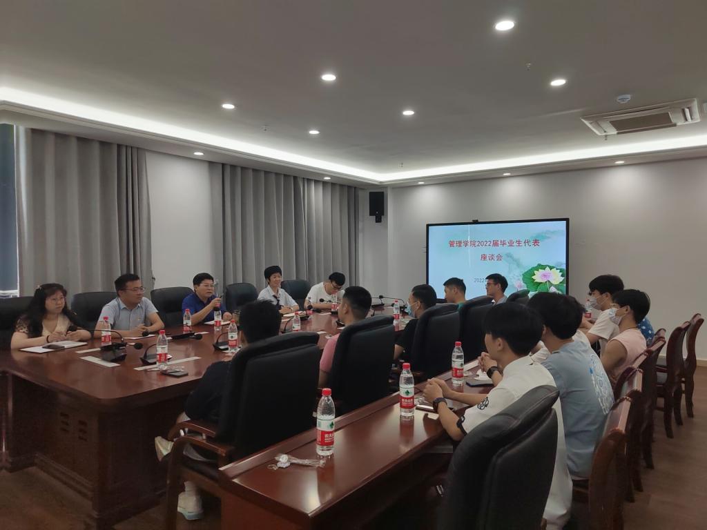 6月7日下午,管理学院在综合信息楼西附楼317室举行2022届毕业生代表座谈会。管理学院院长、党委副书记陈传万、学院党委副书记陶漫以及各位专职辅导员出席会议,学院毕业生代表参加座谈会,会议由陶漫主持。