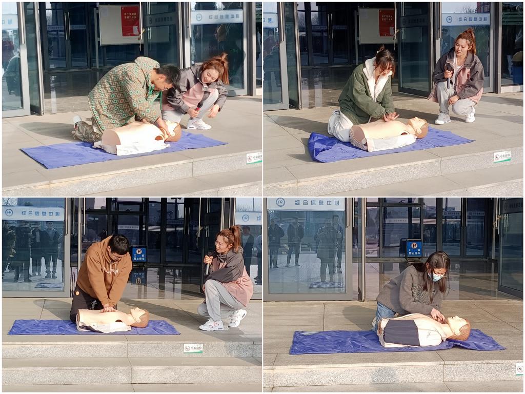 活动现场,徐杨、张淑敏通过成年人模型对心肺复苏标准动作进行生动规范的演示之后,同学们积极踊跃地抓住学习机会,就心肺复苏进行现场模拟体验操作,徐杨、张淑敏对操作者的每一个动作逐一进行了规范的指导,取得了较好的培训效果。