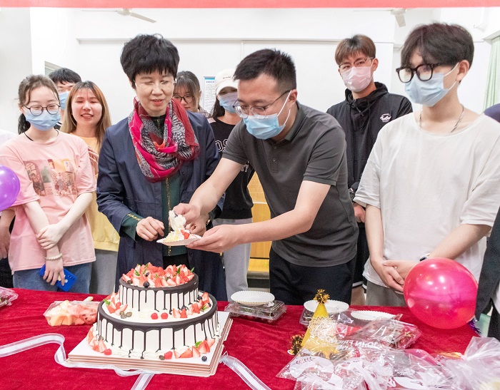 陶漫在致辞中代表学院为“小寿星”们送上生日祝福,她寄语同学们,在人生成长的历程中要学会感恩,感恩父母、感恩人生历程中关心关爱自己的每一个人;要学会感动,懂得对生命的感动。要努力培养自己的责任感,使自己成为一个对家庭对社会有用的人。希望通过此次活动,同学们精神更加丰盈、身心更加健康、人格更加完善。今天我们以这种特殊的形式在特殊的日子里来温暖大家,祝大家生日快乐,在安科学有所成。