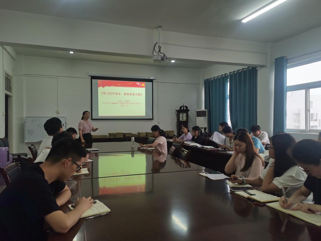 为教育引导学生党员学史明理、学史增信、学史崇德、学史力行,切实增强“四个意识”、坚定“四个自信”、做到“两个维护”,7月8日上午,生命与健康科学学院药学类专业学生党支部在学院会议室开展“学习百年党史,汲取奋进力量”党课学习。党课由学院党委副书记彭丽萍主讲。