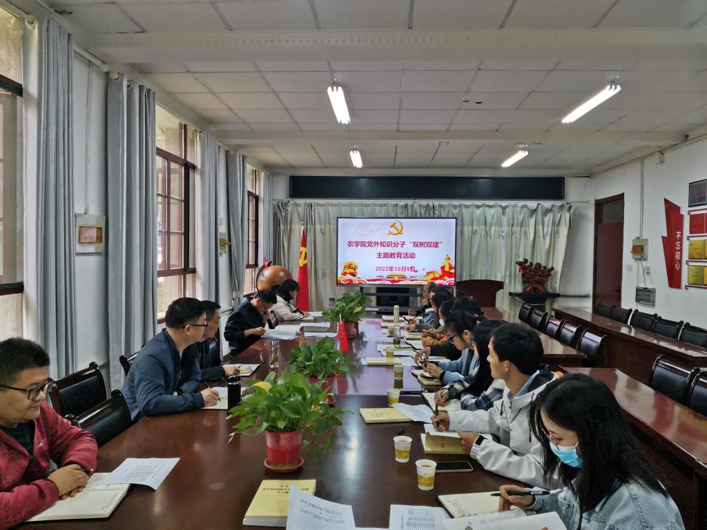 为加强对学院党外知识分子的思想政治引领,发挥党外知识分子在学校、学院改革发展中的重要作用,10月9日上午,农学院在学院会议室开展2022年度党外知识分子“双树双建”主题教育活动。学院党委副书记、院长崔广荣,党委副书记、纪委书记张轶辉,党委委员、副院长舒英杰,党委委员、副院长李文阳及学院全体党外知识分子参加活动,活动由崔广荣主持。