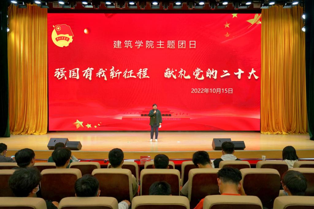 10月15日,建筑学院在图书馆东辅楼二楼报告厅开展“强国有我新征程 献礼党的二十大”主题团日。学院党委副书记谢宜勤、团委书记沈德艳,团学干部,2022年受到团内表彰的先进集体和优秀个人代表,以及2022级全体新生参加活动。