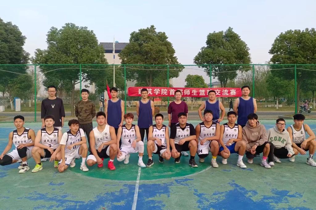 “暮秋之时,会于龙湖之篮亭”。为进一步推动学院精神文明建设,增加师生交流、增进师生友谊,持续深化“三全育人”格局。11月9日下午,由建筑学院工会主办、院团委承办的首届师生篮球交流赛在风雨操场正式开赛。建筑学院党委书记傅友福、党委副书记谢宜勤到场观赛,比赛双方为学院教职工代表队、校篮球联赛卫冕冠军学生代表队,比赛特邀校团委副书记王乐、电气与电子工程学院楼树勇老师到场参赛。
