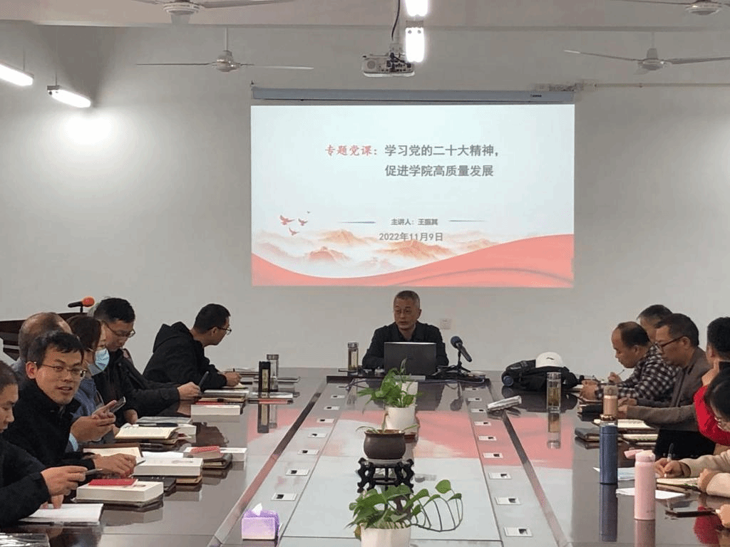为深入学习贯彻党的二十大精神,深刻领会、准确把握党的二十大精神实质和丰富内涵,切实引导学院教工党员把思想、认识和行动统一到党的二十大精神上来。11月9日下午,信息与网络工程学院党委书记王振其在尚行楼B418会议室以“学习党的二十大精神,促进学院高质量发展”为主题为全体教工党员上了一次专题党课。