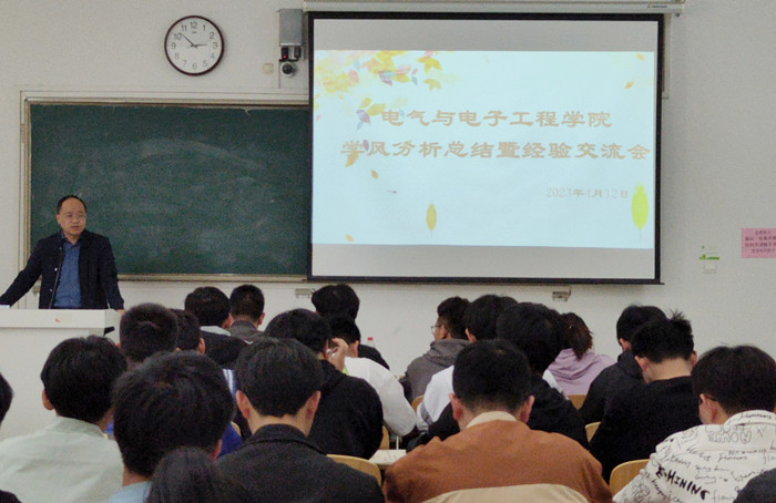 为进一步加强学院学风建设,营造良好的学习氛围。4月11日上午,电气与电子工程学院召开学风分析会,专题研讨分析学院当前学生学风状况,会议由学院党委副书记、纪委书记尚磊主持,全体专兼职辅导员参加。陈更强通报了学期初学生课程考试情况和落实成绩反馈家长制度的抽查情况,并就近几周督导听课、学风督查、上课考勤、学委履职情况进行了通报。各辅导员从日常管理、晚自习检查、考试通过率多角度分析所带班级当时存在的不足和问题,与会人员各抒己见,对个别“学困”学生的教育管理进行了交流讨论,尚磊总结中指出,大家根据日常工作举措结合学生学习效果,进行认真分析,科学研判,查找原因,为下一步精准施策,有针对性地改善学风建设工作的薄弱环节,提供了参考依据。最后,他就下步工作进行了部署安排,同时强调,学风建设是一项多方位、全过程,常抓不懈的工作,要以“树好学风、聚正能量”为目标,本着“形式多样化、涵盖范围广、教育效果好”的原则开展,不断探索学风建设创新模式,提升育人实效。