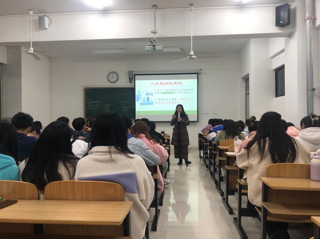 省级“课程思政”示范课程项目负责人王崇彩老师负责《市场营销学》“课程思政”示范公开课主讲,讲授的主要内容为:促销策略。王老师课堂设计围绕“课前初体验+课中加扮演+课后题检验”三个环节,采用理论讲授+角色扮演+视频+案例分析4种教学方式开展。课前,通过新媒体教学工具发布促销选择试题,激发学生的参与热情;课中,基于促销基本理论和推拉理论,组织三位学生进行角色扮演,让学生深切体验促销中“推”和“拉”的差异,启迪学生“从内打破是成长”,号召大家不畏困境,勇于突破自我;课后,通过人员推销形式的案例分享,将当下直播明星“李佳琦”和传统柜台推销人员“张秉贵”的事迹对比,帮助学生树立平等择业观,激励学生求真务实、踏实奋进,积极投身到实现中华民族伟大复兴的热血实践中去。(特约通讯员:江旭聪 摄影:李喻 审核:陈传万 编辑:张威)