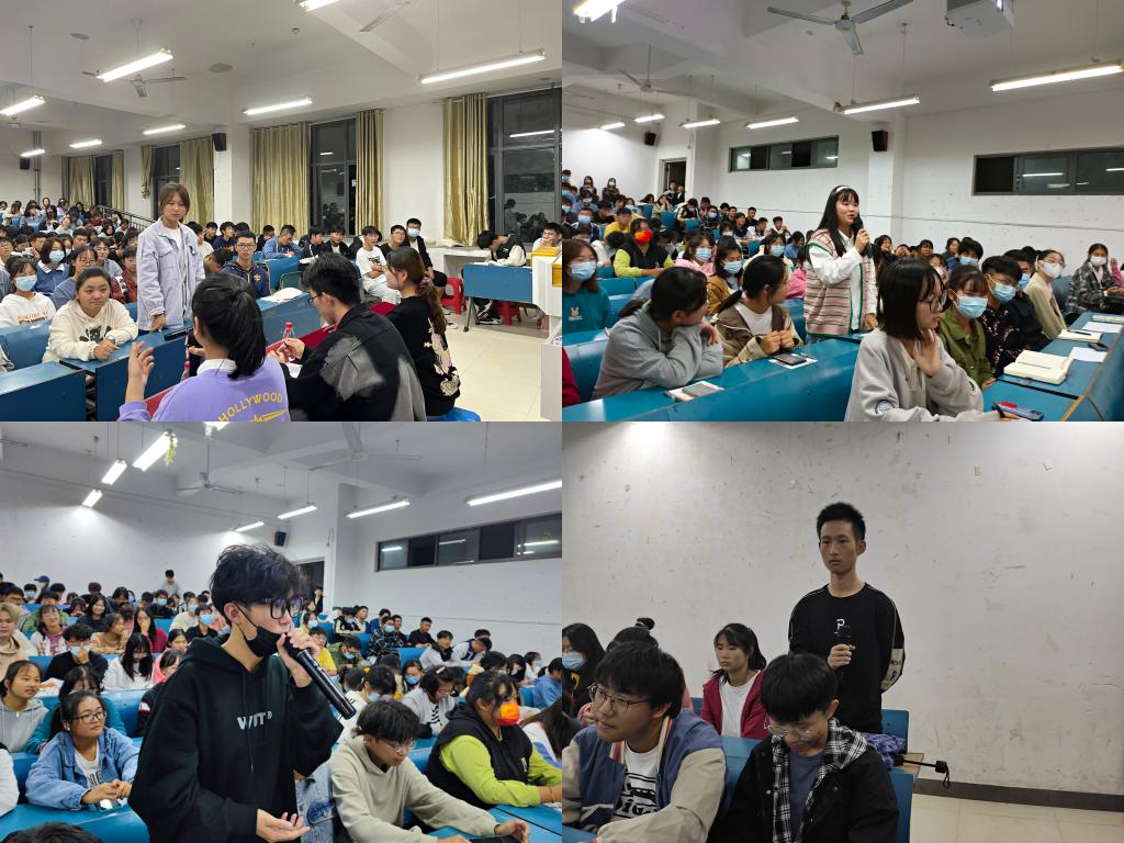 交流会初始,同学们首先观看了一段关于奋斗和坚持的励志视频,受到了很大鼓舞。随后,优秀学生代表们结合自身经历分别从学习经验、创新创业实践、大学期间学习、工作和生活的关系等方面向新生们进行分享,指引他们对未来的学习、生活做好合理的安排和规划,并就一些常见问题给新生提出宝贵建议。用一句“大学是用来珍惜的,不是用来惋惜的”警醒同学们要端正学习态度,认真求知;用一句“每一个不曾起舞的日子,都是对生命的辜负”劝告同学们努力才不辜负生命的意义;用一句“坚持下去,你会懂得什么叫苦尽甘来”鼓励同学们要不断坚持,才能走向成功的彼岸;用一句“眼要看远,脚要近迈”告诫同学们在提高眼界的同时更要脚踏实地;用一句“不要放任迷茫”勉励同学们要确定目标并坚决追寻下去。嘉宾们发言环节结束后,新生们积极讨论,踊跃提问,老生代表也耐心细致地解答了新生们的疑问。