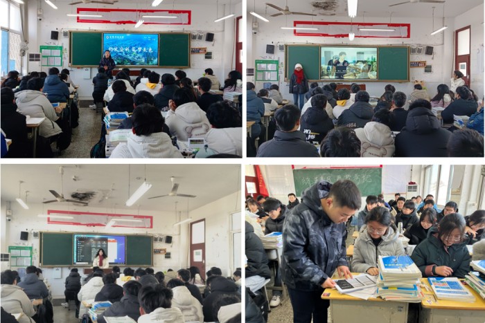王旭拜访了高中母校老师李娜,将凤阳中学考入安徽科技学院的学子“成长喜报”交给李老师。李老师对他们的到来表示热烈的欢迎,与他们一同回忆了高中校园生活的点点滴滴。然后,团队成员王旭、陈心慈、马亚楠分别到高三年级各班级开展宣讲活动,播放安徽科技学院招生宣传片,并通过PPT向高三学弟学妹们介绍了学校概况、专业特色、校园生活、考研就业、个人发展等方面,团队成员与学弟学妹们进行交流,针对大家关心的专业选择、学校选择、升学准备、大学生活等问题进行详细的解答。许多学弟学妹们表示,他们对安徽科技学院有浓厚兴趣,期待能够进入安徽科技学院学习。