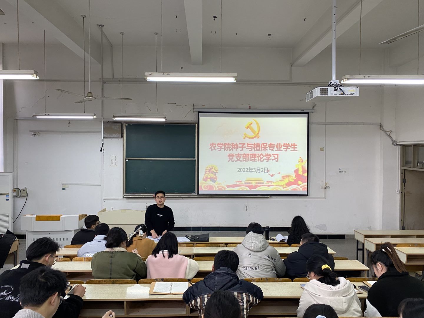为深入学习贯彻习近平新时代中国特色社会主义思想和党的十九届六中全会精神,不断巩固拓展党史学习教育成果,3月2日,种子与植保专业学生党支部在求知楼A203召开2021年度组织生活会和民主评议党员大会。农学院党委副书记、纪委书记张轶辉到会指导,支部全体党员参加会议。会议由党支部书记汪道兵主持。