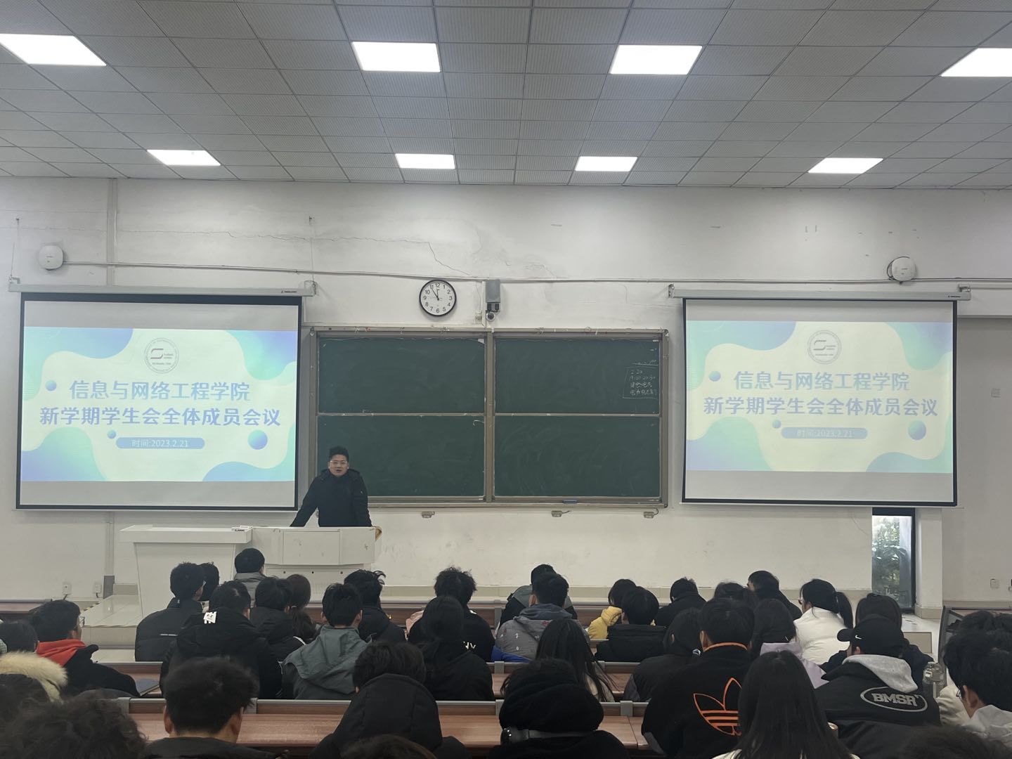 为加强学生管理,提高学生干部综合素质与责任意识。2月21日中午,信息与网络工程学院在致知楼C111召开新学期学生会全体成员会议,学生会指导老师崔北坤、专职辅导员许磊,学生会全体成员参加会议,会议由崔北坤主持。