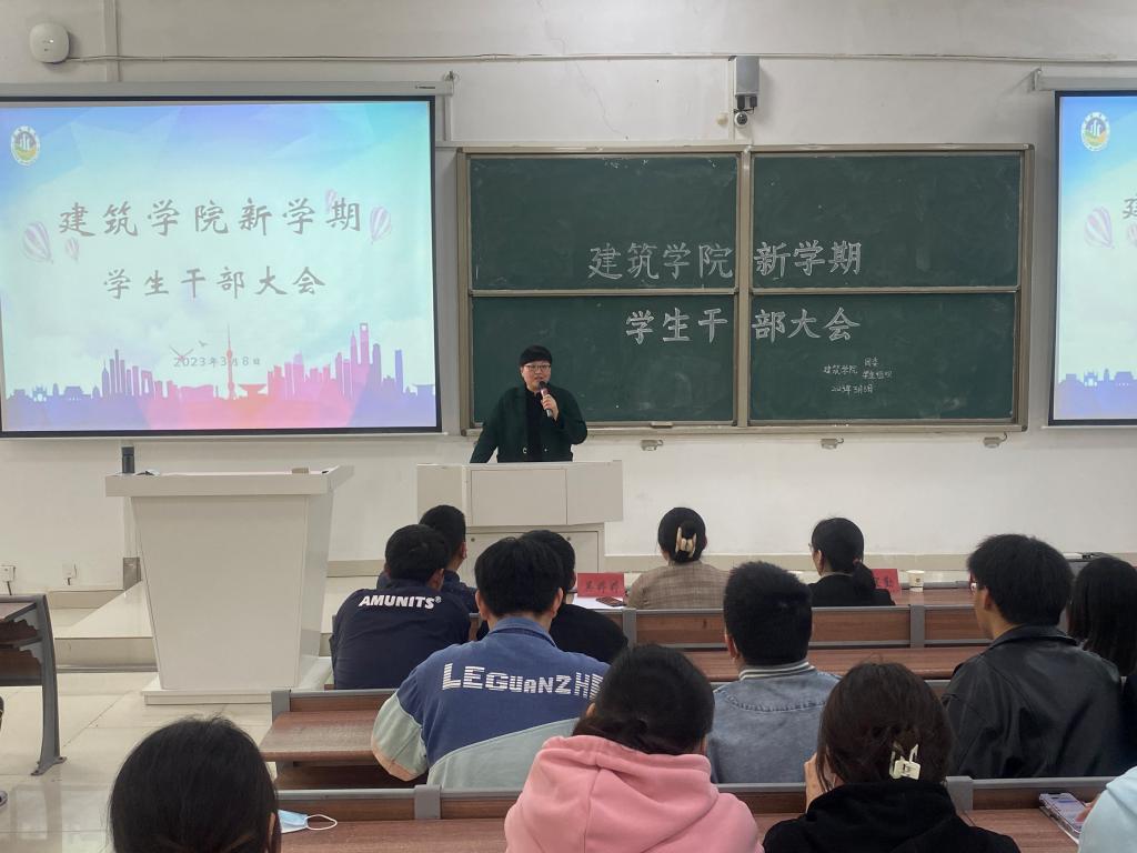 新年新气象,新春新目标。3月8日下午,建筑学院在致知楼B111召开了新学期学生干部大会。学院党委副书记、纪委书记谢宜勤,全体辅导员,各学生团体组织及各班级主要学生干部参加会议。会议由学院团委书记沈德艳主持。