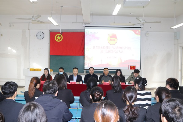 12月9日上午,共青团安徽科技学院动物科学学院第二次代表大会在新知楼B101胜利召开。动物科学学院党政领导、全体专职辅导员以及64名团员代表出席本次大会。会议由大会执行主席李焱主持。