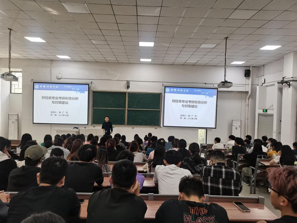 为落实学校学风建设年活动,激发学生的考研热情,增强学生对考研的认知认同,引导学生励志考研成就自我,财经学院于10月20日至25日分两场在致知楼A111教室举办“财经类专业考研形势分析与对策建议”专题讲座。学院党委副书记耿广汉主讲。部分辅导员及全体2021级同学聆听讲座。讲座由专职辅导员宣晶晶主持。