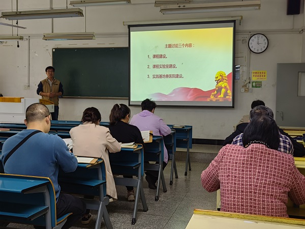 为深入开展学习贯彻习近平新时代中国特色社会主义思想主题教育,5月24日下午,动物科学学院在求知楼B106教室开展实习实训基地建设专题调研,动物医学系全体教师围绕课程建设、课程实验室建设和实践基地兽医院建设进行了热烈讨论,调研由学院党委委员、副院长贺绍君主持。