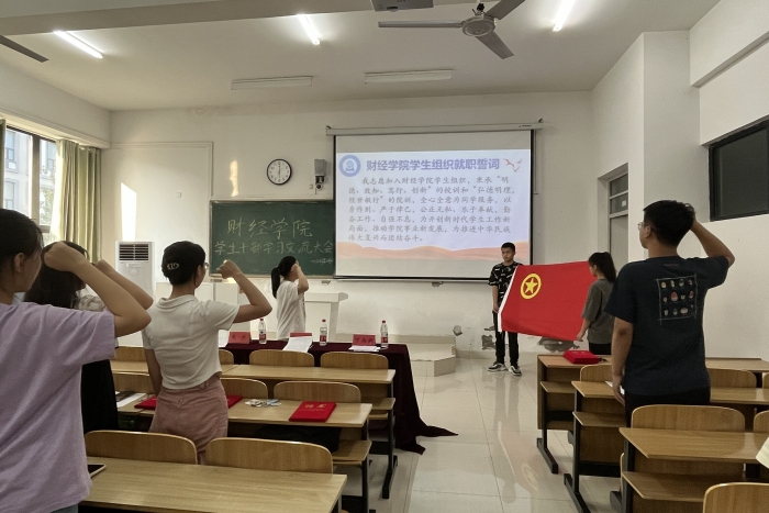 全体新任学生干部进行就职宣誓,承诺为开创新时代学生工作新局面,推动学院事业新发展而团结奋斗。