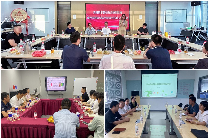 8月4日至7日,由食品工程学院党委书记付光玺、副书记王广良、副院长翟立公、食品营养与安全专业党支部书记杨剑婷、分团委书记赵传磊一行五人组成的考察组前往杭州、宁波、南京等地,同杭州顶津食品有限公司、杭州加减饮品科技有限公司、杭州良芝文化商贸有限公司、南京雨润食品有限公司以及宁波众星不动产经纪有限公司等校友企业围绕人才培养、合作创新、产教融合、实习就业基地建设等进行交流。
