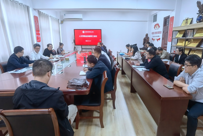 10月11日下午,人文学院在学院会议室召开全体教职工会议。人文学院党政领导和全体教职工参加会议。会议由学院党委副书记、副院长李晓东主持。