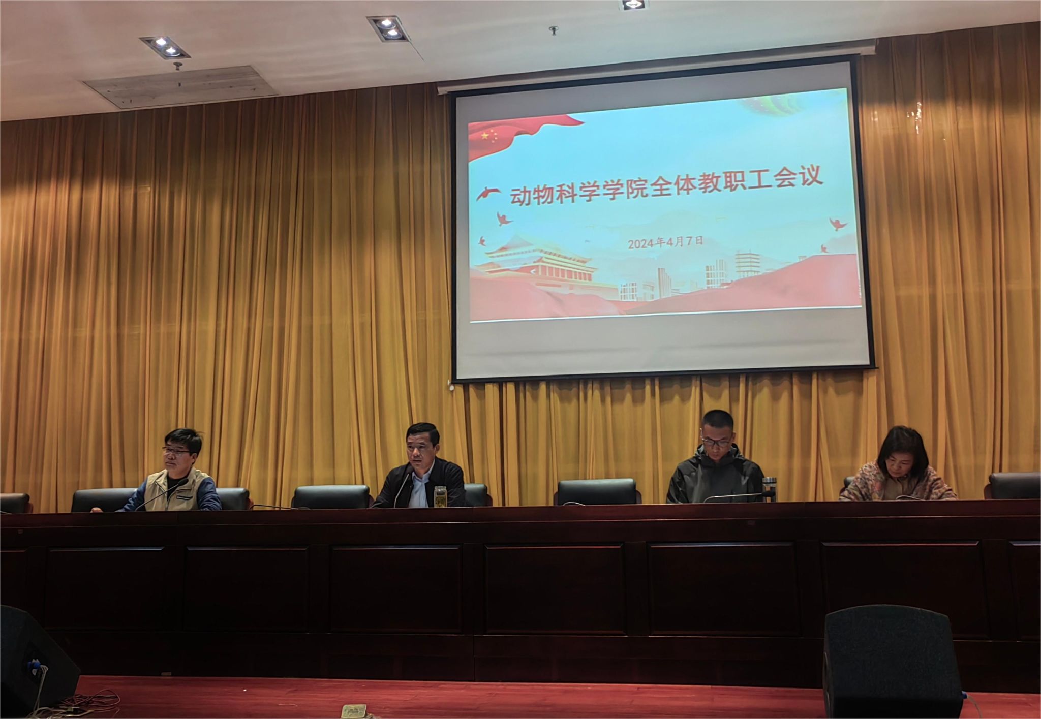 4月7日下午,动物科学学院在图书馆二楼报告厅召开全体教职工大会,推进审核评估线上迎评等重点工作,学院党政班子成员及全体教职工参会。会议由学院党委书记、副院长程斌主持。