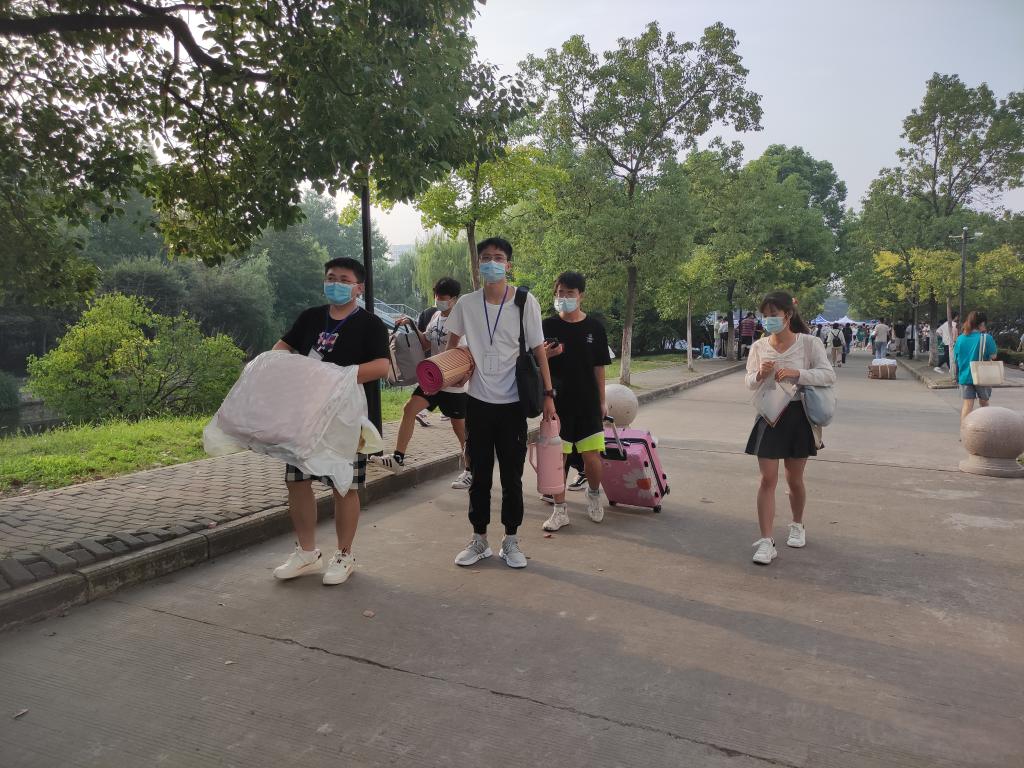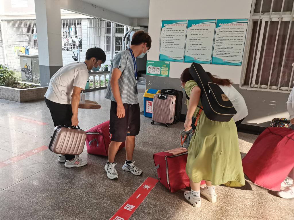 “同学,请先这边扫码”“同学,请拿出录取通知书、身份证、准考证检录”“同学,请收好你的校园卡和钥匙”一句句温柔的话语汇成动人的音符。井然有序的迎新现场也有“意外”发生,一位新生将准考证放在了行李箱中拿不出,志愿者轻声安慰她别着急,并领着她先前往宿舍将通知书取出再来进行检录。耐心、细心、贴心,志愿者们用家人的方式温暖着每一位前来报到的新生。