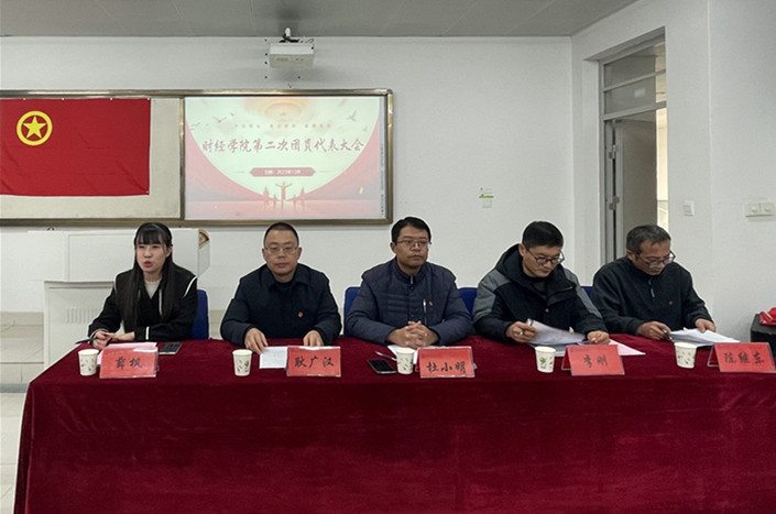 12月6日下午,共青团安徽科技学院财经学院第二次代表大会在致知楼B309顺利召开。校团委副书记李刚,财经学院党委书记杜小明,党委副书记耿广汉,院党委委员、工会主席陈继东及学院全体辅导员和54名团员代表出席本次大会。会议由大会执行主席薛枫主持。