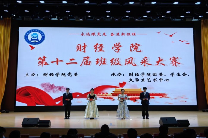 为进一步增强学院班级的凝聚力和向心力,促进班风学风,营造良好的校园文化氛围,12月2日下午,财经学院在龙湖校区东辅楼报告厅成功举办“永远跟党走,奋进新征程”第十二届班级风采大赛。学院党委书记杜小明、党委副书记耿广汉及学院全体专职辅导员出席。龙湖校区各学院学生会主席团成员应邀担任比赛评委。