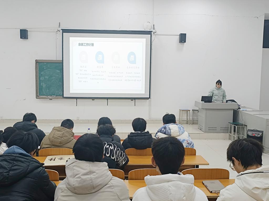 武辉简单梳理和总结了本学期学生会及各学生组织团体举办的各项活动,充分肯定其所取得的成绩,也指出了工作中存在的问题和不足。接着,他对学生团体工作提出了以下要求:一要持续加强思想政治教育引领,明确学生组织是在党委领导、团委指导下的学生组织,要时刻保持思想、行动的先进性;二要谋划工作内容,持续创新性地开展学生团体工作;三要明晰工作职责,继续做好沟通学生和学院的桥梁和纽带;四要脚踏实地,努力学习,做到学习、工作“两不误”,保证学习、工作“齐丰收”;最后,他希望大家凝心聚力,开拓进取,用行动续写学生会“全心全意为同学服务”的新篇章。