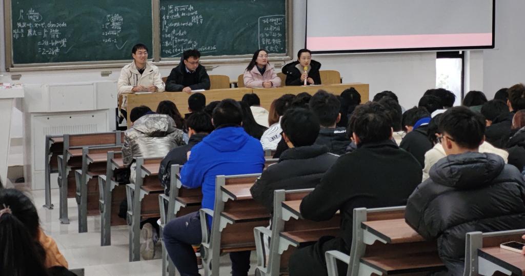 刘婷对学院近3年毕业生考研、就业及创业情况进行了全方位、深层次地分析,指出,2019级学生要立足实际,提前谋划职业规划,提前做好考研及就业创业准备。魏居孟、张雨露、张玉洋和江苗苗等4位老师准备充分,分工明确,他们立足考研和就业创业两大主线,分别展开论述。在考研方面,张雨露、张玉洋老师围绕考研计划制定、考研院校选取、备考阶段注意事项及专业课与公共课的复习方法等方面展开重点介绍,在场学生均表示收获满满。在就业创业方面,魏居孟老师重点分析学院3个专业就业创业优势,提出强化素质和动手能力培养建议,给在场同学树立了极大了专业自信和就业创业信心。最后,江苗苗老师结合自己的考研经历,建议考研学子要发挥个人课程和专业长处,合理选择报考院校,要提前确立考研安排计划,科学安排生活作息时间,做到张弛有度、劳逸结合。