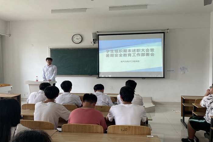 6月29日下午,电气与电子工程学院于致知楼C206召开学生组织干部期末述职大会暨暑期安全教育工作部署会。