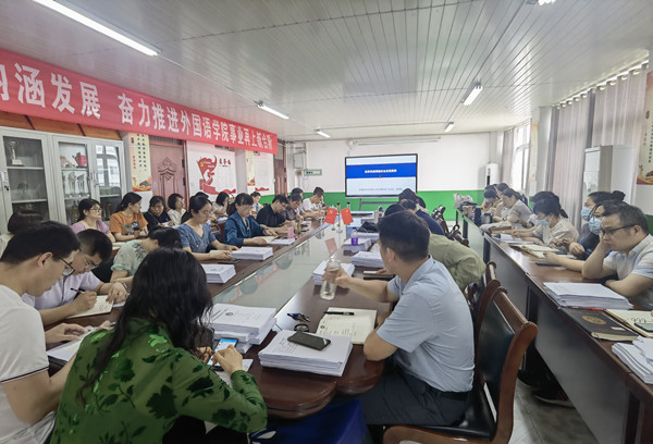 5月25日下午,外国语学院在学院会议室召开全体教职工会议推进期末重点工作。会议由外国语学院院长陈德用主持,全体教职工参加会议。