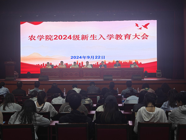 9月22日晚,农学院在大学生活动中心召开2024级新生入学教育大会。农学院党政领导、全体辅导员、各系(实验中心)主任、农学院2024级本科生、2024级研究生等参加会议。大会由学院党委书记何世潮主持。