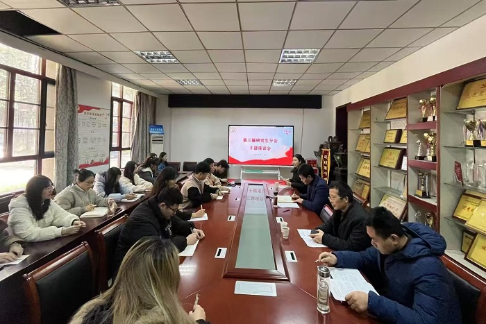 11月28日上午,食品科学与工程学院在学院会议室召开了第三届研究生分会学生干部座谈会。学院党委书记付光玺,研究生党支部书记桑宏庆,研究生教学秘书彭钢出席会议。第三届研究生分会全体成员参加此次会议,会议由研究生辅导员李彤彤主持。