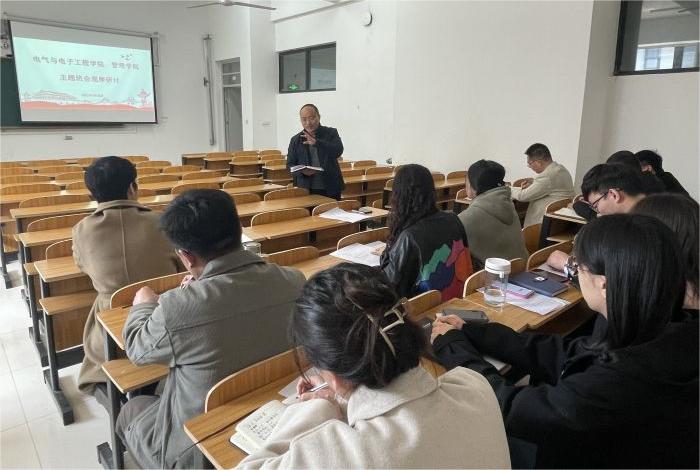 为深入学习贯彻党的二十大精神,落实高校“立德树人”根本任务,充分发挥育人主阵地功能,3月28日上午,电气与电子工程学院与管理学院于致知楼B109组织召开主题班会观摩交流活动。电气与电子工程学院党委副书记、纪委书记尚磊,管理学院党委副书记、纪委书记陶漫出席本次活动,学院专职辅导员及学生代表到场观摩交流。本次班会由陈磊新、江旭聪主讲,陶漫主持。