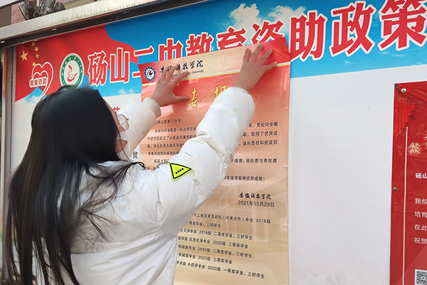 为加强我校与优质生源学校的沟通交流,增进考生对我校的了解,提高安徽科技学院的知名度和社会认可度,增进在校生与高中母校的感情,培养大学生的社会实践能力。1月16日下午,机械工程学院工业设计211班段梦茜、外语学院翻译213班刘荣荣两位学子赴砀山县第二中学开展“我回母校报喜讯”寒假专项社会实践活动。