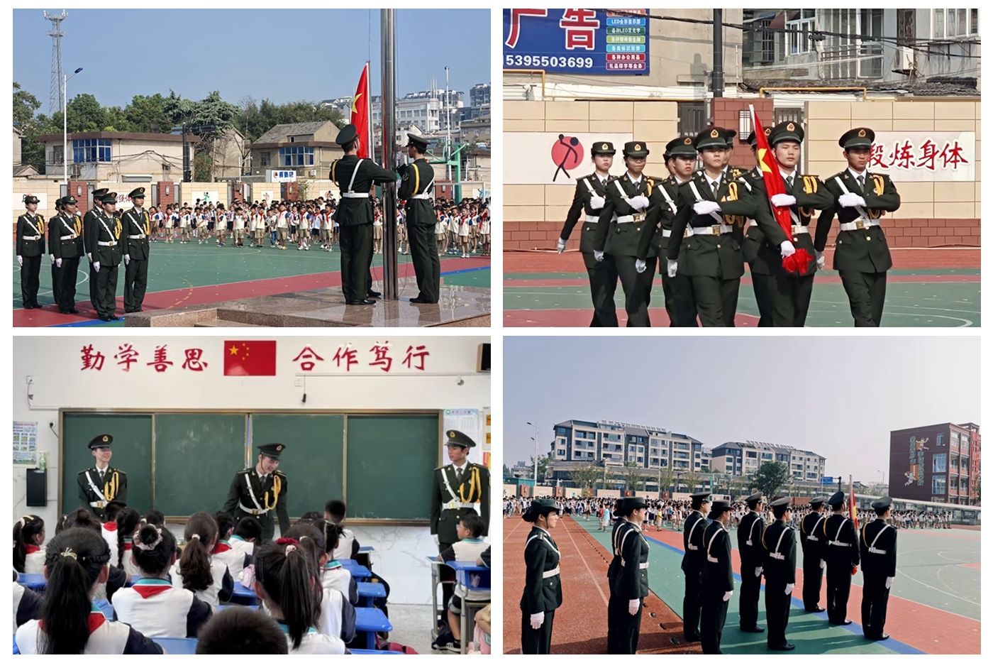 今年是新中国成立75周年,为进一步弘扬爱国主义精神,增强小学生的爱国意识和民族自豪感,9月5日上午,校国旗护卫队受凤阳县委宣传部、凤阳县退役军人事务局邀请赴凤阳县工人子弟小学举行爱国主义教育升旗活动。