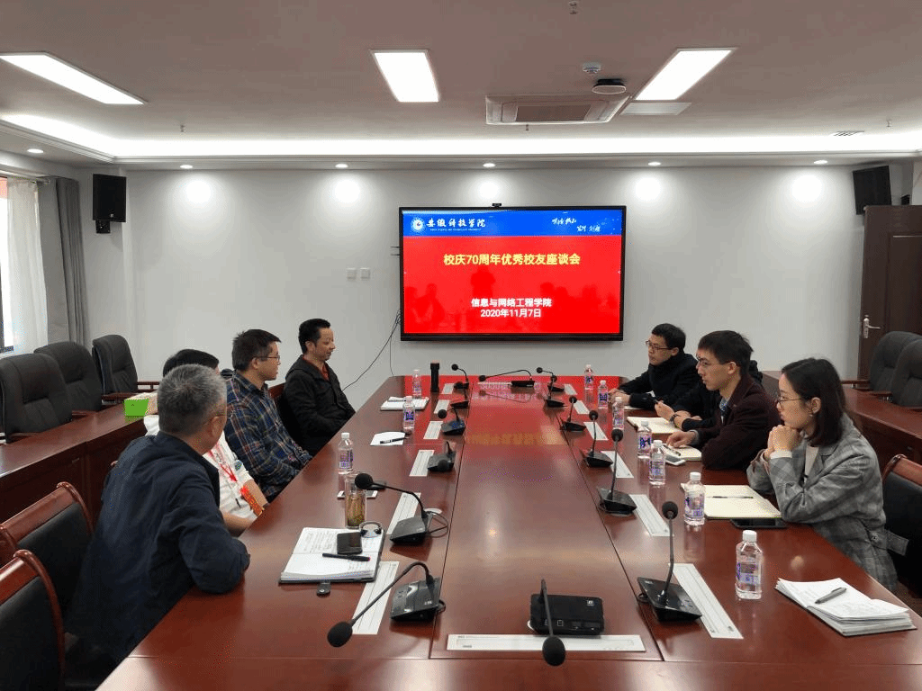 在学校70周年华诞之际,11月7日下午,本着“学术校庆、人文校庆、校友校庆”的宗旨,信息与网络工程学院举行校庆70周年优秀校友座谈会,八名校友代表受邀从全国各地回到阔别已久的母校,追忆同窗旧事,再叙师生情谊,畅谈人生感悟,共话发展。学院党总支书记王振其、院长余宏杰、学院教师代表吕雅洁等参加了会议,座谈会由王振其主持。