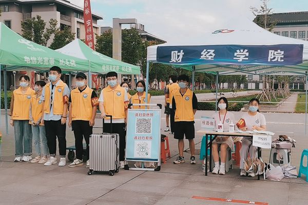 党旗飘扬展风采,先锋服务暖人心。早上6:00,迎着秋日的凉意,带着神圣的使命,党员工作站的全体学生党员们按照学院工作部署,统一着装、佩戴徽章,主动亮出党员身份,在新生报到开始前,他们就已经将迎新的场地、物资等准备就绪。迎新志愿服务过程中,全体学生党员以饱满的精神状态,想新生所想、急新生所急,以不怕苦、不怕累的精神,坚守迎新工作一线。由于疫情防控要求,家长不能陪同进校,党员们主动帮助新同学搬运行李、引导办理报到手续、协助整理寝室内务、为新生们开展答疑解惑,展现了财经学院学生党员的良好风貌。党员们热情耐心、周到贴心的服务为初到陌生环境的新生们营造了归属感和安全感,让新生们消除了刚入学的紧张和陌生感,深切感受到财经学院这个大家庭的温馨与和谐。