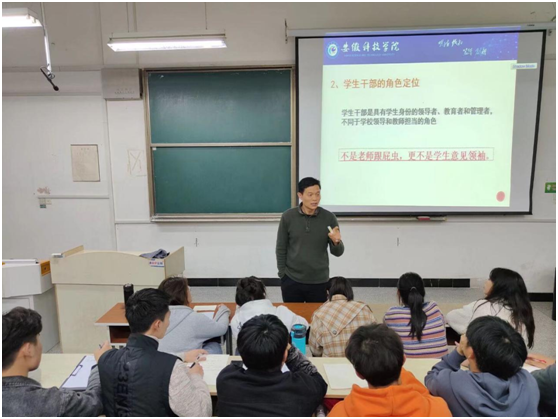 本次讲座给在座的全体学员上了精彩而有意义的一节课,通过本次讲座,学生干部对今后的工作有了更深层次的认识,明确了自己的位置与目标,为今后的工作打下了坚实的基础。(特约通讯员:杨勇 审核:付光玺 编辑:张威)