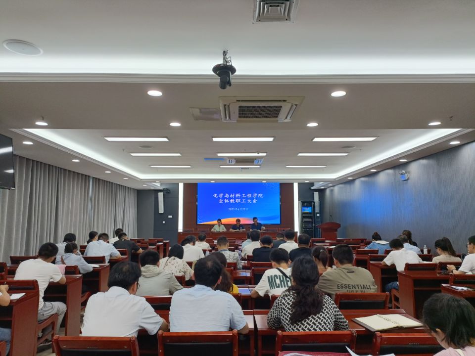 6月22日,化学与材料工程学院在西附楼111会议室召开了期末全体教职工会议,学院党政领导及全体教职工参加了会议,会议由学院党委书记黄树桥主持。